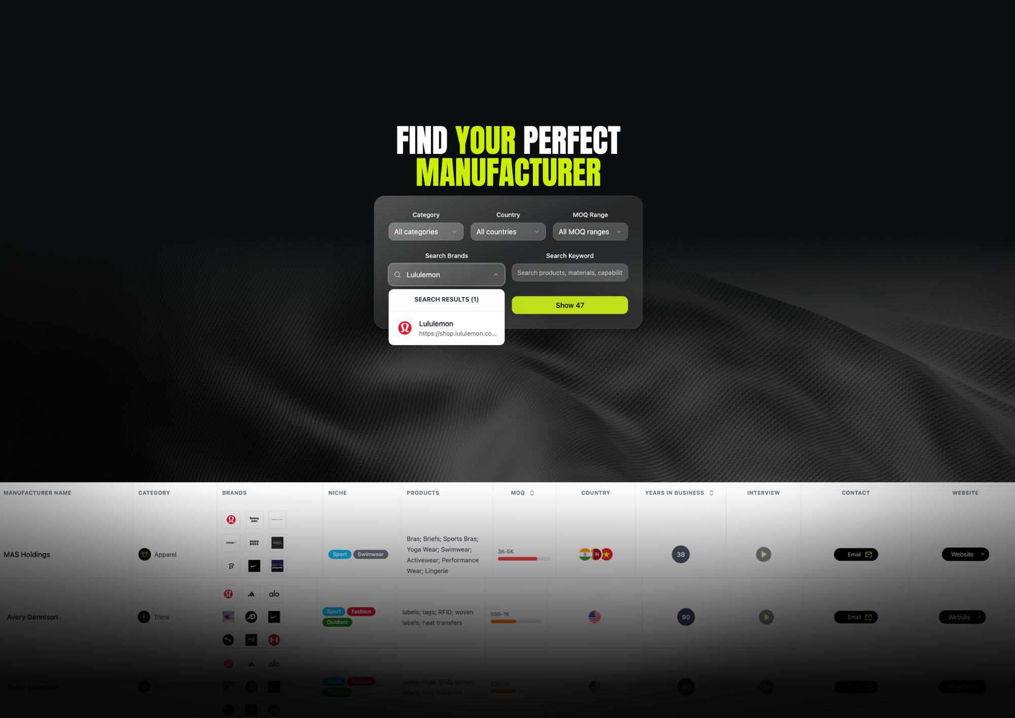 Find your perfect manufacturer in no time